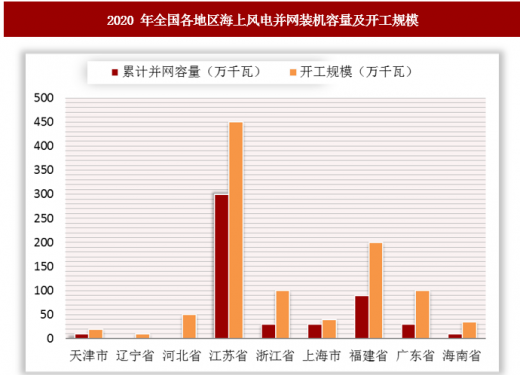 按照国家能源局发布的《风电发展“十三五”规划》可知,到 2020 年底,我国海上风电并网容量达到500万千瓦以上;按照平均14000元/kw的投资规模,海上风电的市场空间达 560 亿元。