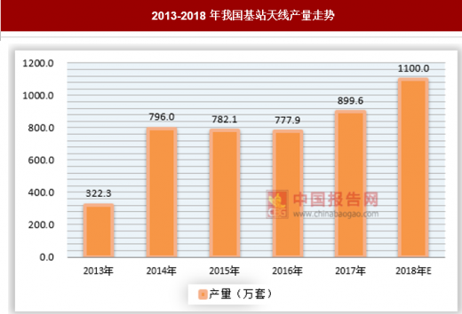 根据相关数据测算,我国基站天线总产量自2014年开始处于高位横盘的状态,这可能源于2014年4g带来的市场需求刺激,而后随着4g建设的逐步完整而逐渐趋于稳定甚至下降,随着国家对5g的部署,2017年天线产量再度上升,同比增长15.6%。
