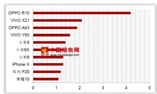 具体机型来看,2018年第三季度,oppo在今年3月底发布的oppor15成为销量占比最高的机型,市场占比达到4.2%,位居第一。vivox21和oppoa83分别居于二、三位,销量占比分别为2.1%、1.9%。从数量来看,小米有3款机型位列前十,华为有2款。值得注意的是,iphonex位于前十,也是苹果唯一上榜的机型。