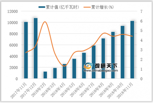 根据国家统计局数据显示,2018年11月我国水力发电量达879.3亿千瓦时,同比增长1.5%;2018年1-11月我国水力发电量累计值为10297.3亿千瓦时,累计增长4.4%。