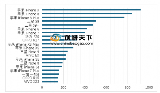 2018年第三季度品牌高端畅销机型top20总出货量为7262万部,出货量主要来自苹果与三星,其中苹果占比62.09%排名第一,三星占比19.46%排名第二。国产品牌方面,华为p20以331万的出货量排名第8,oppo r17以325万的出货量排名第9,vivo x23以150万的出货量排名第20,小米暂时无机型上榜。