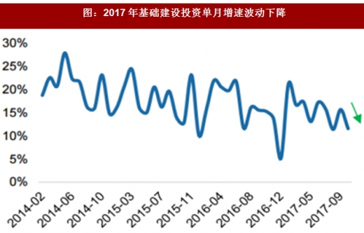 图:2017年基础建设投资单月增速波动下降