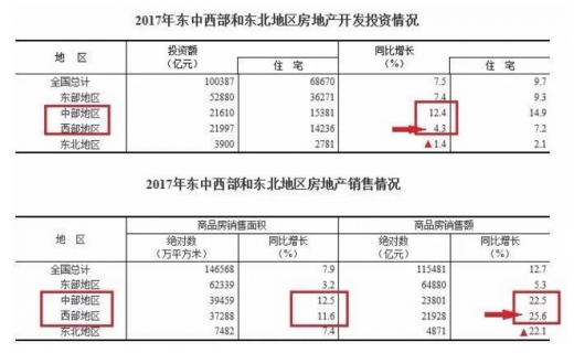 根据统计局数据,2017年全年,中国商品房销售额平均增长12.7%。如果分区域来看,中西部地区成为了市场增量最集中的地方。