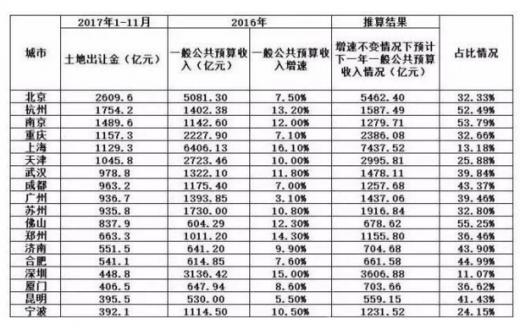 地方这样做的动机有多强呢?我们来看一下各城市对于土地出让利益的依赖度。据统计,中国各地土地出让金占公共财政预算收入的比例相当高。有不少主要城市都在20%到30%左右,成都、合肥、济南等地超过43%,而像是杭州、南京、佛山等地更是高达50%以上。房地产依然是地方的主要财源。