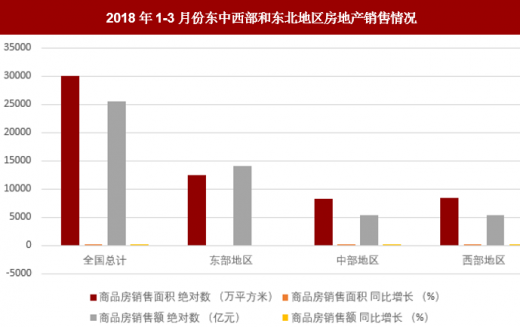 据数据显示,2018年1-3月全国房地产开发投资21291亿元,住宅开发投资14705亿元。其中在房地产和住宅方面均是东部地区占比最高。