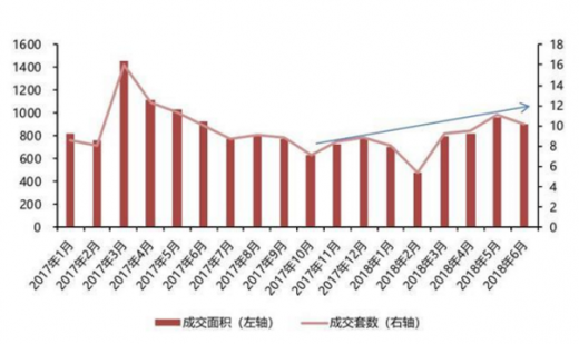 从月度走势看,自2017年3月以来,我国二手房成交波动下行趋现,至2017年10月“触底”,随后由于新房火爆、“一房难求”等多重因素影响,二手房成交面积与成交套数均持续增长,到2018年6月我国二手房成交面积、套数出现小幅下滑,但总体仍高于2018年月均水平。