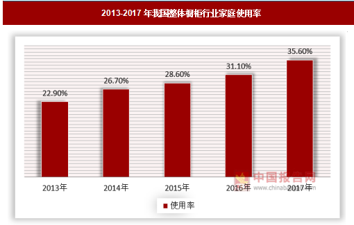 近年,随着消费个性化消费需求的上升,国内整体橱柜占厨柜购置方式中的比例也正显著提升。2017年,我国整体橱柜行业家庭使用率达到了35.6%,较2013年增长了12.7%。