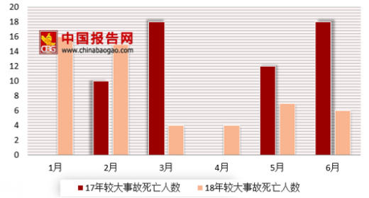 较大及以上事故方面,2018年上半年,全国共发生房屋市政工程生产安全较大及以上事故13起、死亡52人,比2017年同期事故起数减少3起、死亡人数减少6人,同比分别下降18.75%和10.34%。全国有9个省(区、市)发生房屋市政工程生产安全较大及以上事故,其中,广东发生3起(含1起重大事故),安徽、广西各发生2起,天津、河北、河南、四川、海南、宁夏各发生1起。