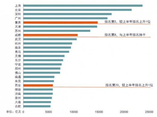 市场方面,成都和重庆甲级写字楼中涉及会计师事务所、银行、保险、律师事务所、广告企业、管理咨询等企业的面积占比均在20%,其中不乏麦肯锡、汇丰、普华永道、德高等世界五百强和知名跨国企业。此外在零售方面,成都连续五年坐稳零售第四城。