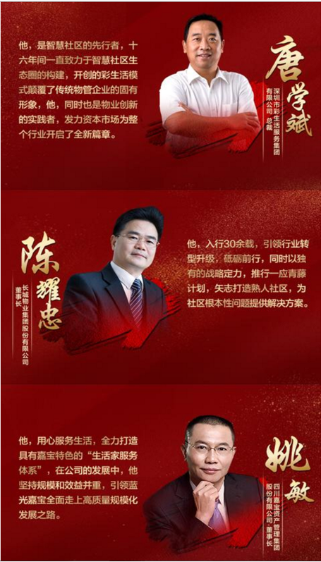 据了解,此次评选再次覆盖地产、物业、家居三大领域同时甄选年度行业风云人物。其中“2018中国物业经理人100强”、“2018中国十大物业年度ceo”是物业领域通过网络投票及专家评审环节评选出的两类奖项。根据榜单显示,李长江成为2018中国十大物业年度ceo榜首。