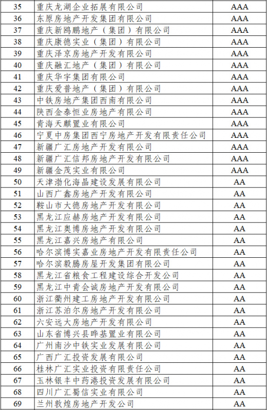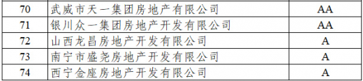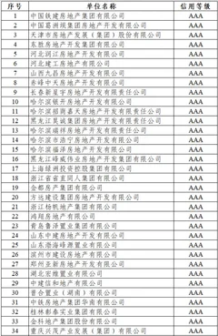 根据榜单显示,在这74家房地产企业中,a级有3家,aa级的有22家,aaa级的有49家。