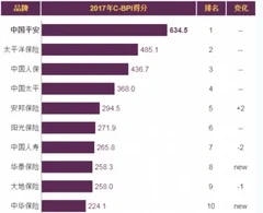 2017年我国汽车保险品牌力指数排名情况