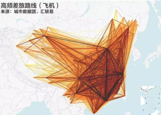 出差路线密集度,或许正从某个角度体现出了某个区域的经济活跃度,体现出了该区域的活力。
