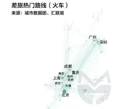 作为主要的差旅出行方式之一,火车热门路线的结构亦呈“十字架 小雷达”。其