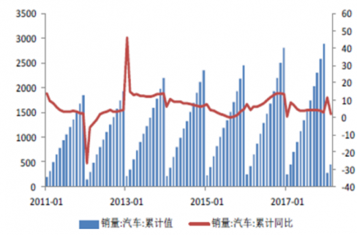 根据数据显示,2018年1-2月我国销量维持较低增速,累计销量为452.7 万辆,比2017年同期增长1.7%。从细分市场来看,乘用车累计销量393.2 万辆,比2017年同期增长2.1%,客车累计销量5.5 万辆,比2017年同期增长0.7%,货车累计销量54.0 万辆,比2017年同期下降0.8%。