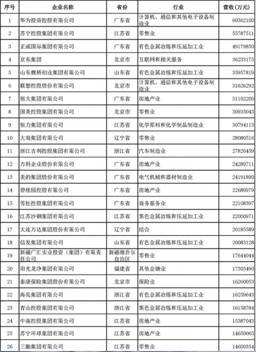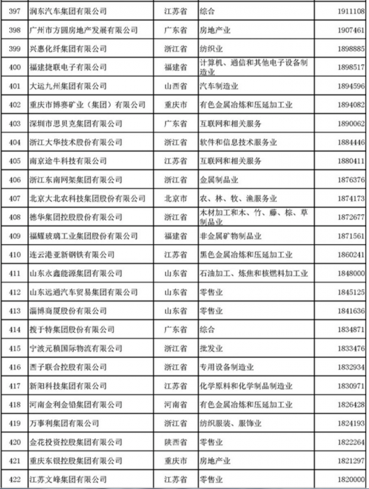 据了解,2017年营业收入总额超1000亿元的有42家企业,在500-1000亿元之间的民营企业有91家,另外有367家企业的额营收入在100-500亿元之间。