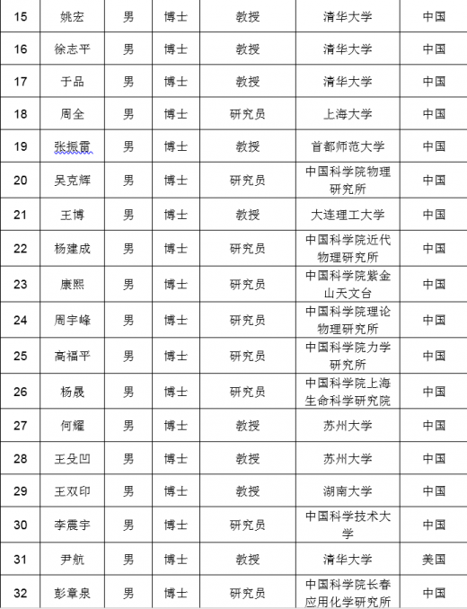 从国别上看,200人中199人来自中国(含1人来自中国香港地区),1人来自美国。从入选者所在单位来看,清华大学入选人数最多,达到18人。北京大学入选16人,紧随其后,清华和北大两所学校入选杰青占比超过了17%,远远多于其他高校。中国科学院上海生命科学研究院入选7人,中国科学技术大学和上海交通大学各入选5人。浙江大学、南京大学、哈尔滨工业大学、华中科技大学、武汉大学、天津医科大学各有4人入选。