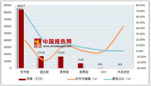 2018年上半年,各类基金中短期理财基金规模较年初增长91%,达6967亿。另外货币基金规模继续攀升,占据全市场规模的66%,这一比例远高于美国共同基金市场18%的比例。