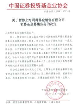 上海利得基金销售有限公司(下称利得基金)因存在从业人员有奖销售私募基金以及与无基金销售资质机构合作,公开宣传推介私募基金产品等问题,被中国证券投资基金业协会责令暂停私募基金业务6个月。