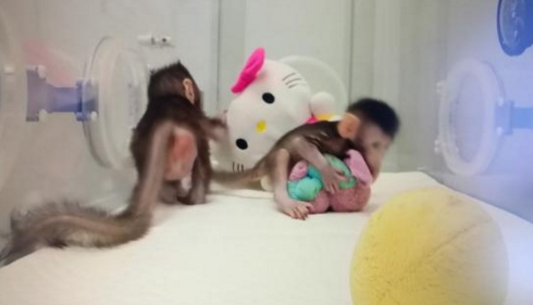 记者在体检合格经过允许之后,进入到位于苏州的非人灵长类平台,见到了还在育婴箱中的“中中”和“华华”,两只遗传基因一模一样的克隆猴虽然个头差了一些,但是却长得几乎一模一样。喝奶粉、垫尿不湿、24小时监控,在专业医护人员的看护下,世界首例通过体细胞克隆的两只小猴正在健康地成长。