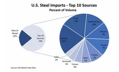 中国钢铁工业协会日前也表示,中国产钢材对美国出口数量有限。ita去年12月发布的第三季度钢铁出口报告显示,美国并非中国钢铁出口的主要目的地。中国大陆的钢铁出口目的地多达220个国家和地区,排在前10位的分别是韩国、越南、菲律宾、泰国、印度尼西亚、印度、巴基斯坦、中国香港、马来西亚和中国台湾,这些市场占中国大陆钢铁出口总量的份额高达53%。