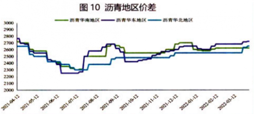 华东市场处于价格上升趋势,3月份沥青现货市场价格华东维持在2680元/吨。详见图10。