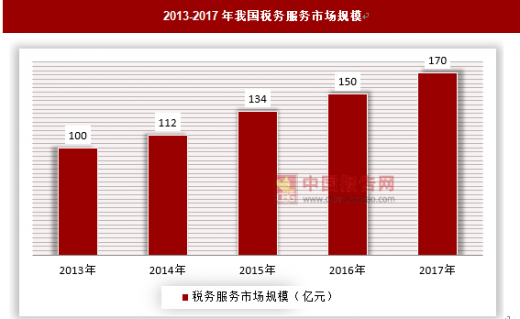 税务服务机构包括税务师事务所、会计师事务所、律师事务所、财务咨询公司等中介机构,按照法律规模为委托人提供税务咨询、税务代理、涉税鉴证等有偿服务。但是,2017年我国税务服务行业的市场规模约为170亿元,远远还没达到税务服务的潜在规模。