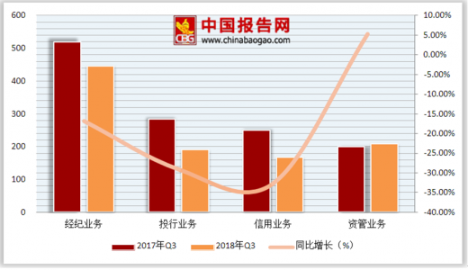具体业务来看,受一级证券发行审核趋严、趋缓等因素影响,34家券商的投行业务手续费净收入190.49亿元,同比下滑29.06%。包括两融业务和股权质押业务在内的信用业务被视为今年券商业务最大的风险点之一。上市券商前三季度信用业务收入为166.97亿元,同比下滑了32.66%。