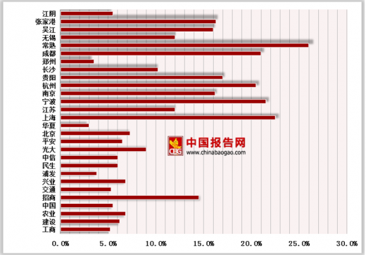 从营收增速来看,28家银行2018年三季度均为增长状态,其中4家银行的同比增速超过了20%,上海银行(601229.sh)以29.49%的增速排在首位,其次为江阴银行、常熟银行和张家港行。