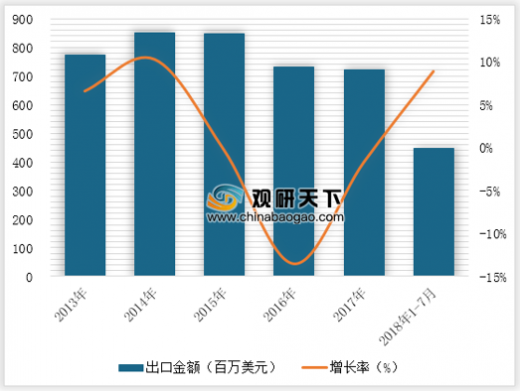 “一带一路”建设下,烟花国际铁路运输业务的开通,将带来诸多利好影响。根据数据显示,2018年1-7月我国烟花爆竹出口量、出口金额较2017年有所增长,同比增长分别为6.6%、8.9%。其中2018年1-7月烟花、爆竹出口量为19.3万吨,出口金额为445.8百万美金。
