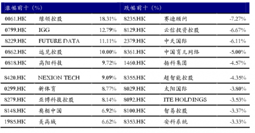 2、2 月 15 日-2 月 20 日港股计算机板块上周涨跌幅前十