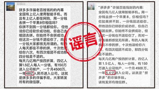 “之前的网络谣言,大多通过微博、微信公众号等公开方式传播。但现在传谣者为了逃避责任,改为投放微信群、qq群等更隐蔽方式,给我们调查、取证带来困难。”拼多多方面表示。
