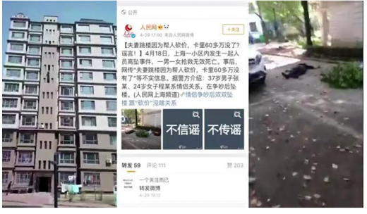 如在3月底,网络上出现以“公安部紧急通告:拼多多砍价盗窃银行账号”的虚假信息。到了4月底,谣言升级成“哈尔滨夫妻拼多多砍价被骗60万跳楼”。在5月初,谣言变种为“监利女子拼多多砍价被骗50万上吊”。