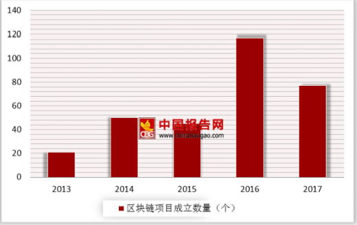 中国区块链项目成立数量从2013年开始逐年走高,2017年受到政策监管等原因数量出现缩减,但获投数量和平均融合额逐渐走高。