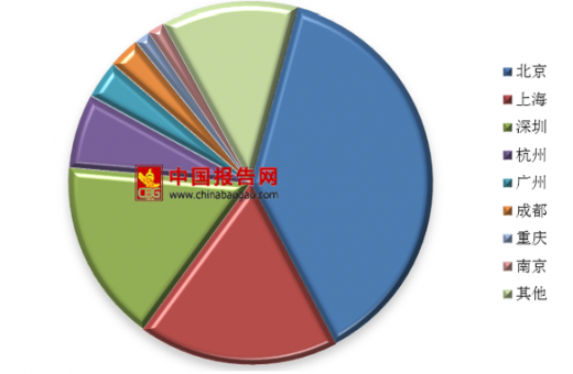 在中国区块链融资地域分布情况中,北京占比最高,占比为38.1%;排名第二的是上海,占比为17.8%;排名第三的是深圳,占比为16.3%;其后分别为杭州、广州、成都、重庆、南京。