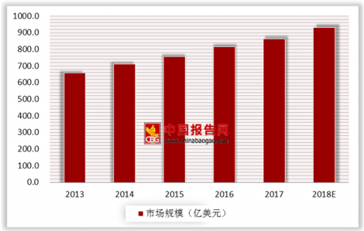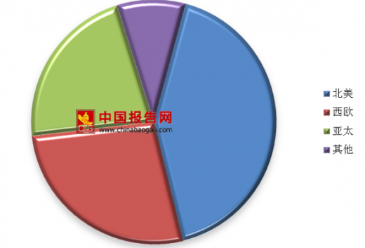 在区域分布上,北美、西欧、亚太维持三足鼎立态势,2016年合计份额超过90%。其中,以美国、加拿大为主的北美地区市场规模全球占比41.67%,占比最大;日本、澳大利亚、中国、印度等10个亚洲国家2016年占全球比例为22.19%。