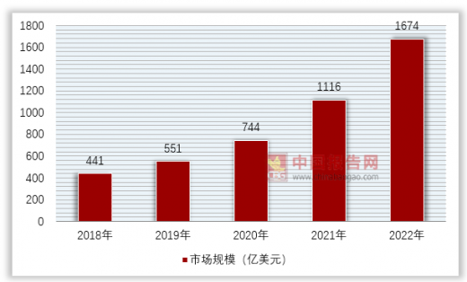 随着区块链技术的成熟,在越来越多的行业被应用,未来行业市场规模将保持加速发展,预计到2022年行业市场规模将达到1674亿美元。具体如下: