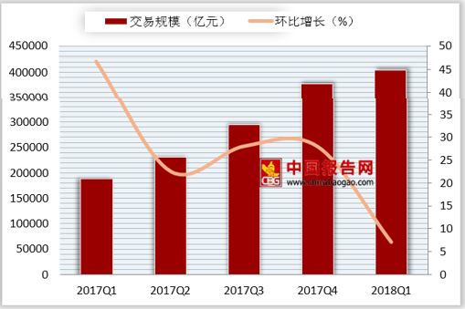 同时,由于支付企业对线下移动支付场景的持续投入,第三方移动支付交易规模近年呈现爆发性增长,在第三方支付整体行业中所占比例逐年上升。2016年,第三方支付移动支付所占比例上升至54.8%;据新一期中国第三方移动支付市场监测报告数据显示,2018年第一季度,中国第三方支付移动支付市场交易规模达403645.1亿元人民币,环比增长6.99%。