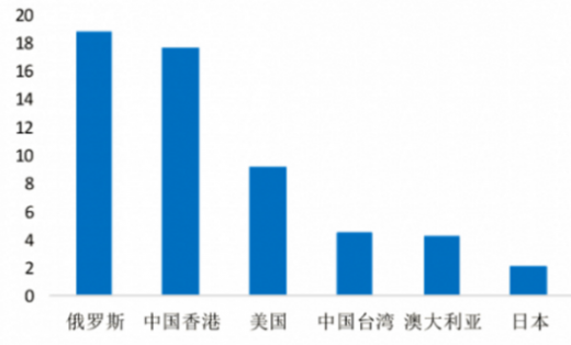 双十一影响力逐渐扩大,阿里占据主导地位。跨境出口方面,主要出口地区包括俄罗斯、中国香港和美国,销售额占比 18.7%、17.6%和 9.2%。从市场份额来看,阿里占据主导地位,阿里国际和速卖通平台合计占比54.9%。