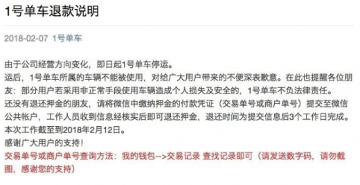 以下为1号单车声明全文: