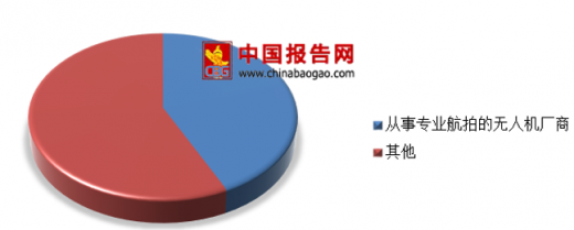 而在无人机各细分中航拍无人机市场发展空间最大。航拍无人机是民用消费级无人机中非常流行的应用市场,目前在主流的无人机厂商中有42.8%是从事专业航拍的。根据分析,在2017年我国航拍无人机市场规模约40多亿元,预计到2020年我国航拍无人机将达250亿元。