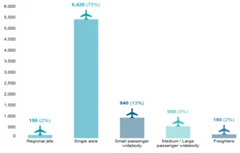 近几年我国飞机市场不断增长。根据预测分析,未来20 年,全球民用飞机总计新增需求为41,030 架,新增市场总规模 6.050 万亿美元。而我国市场上中型/大型宽体客机新增需求 550架,占国内新增需求8%,市场规模约为1,900亿美元;宽体货机新增需求 180 架,占国内新增需求 2%,市场规模约为 600 亿美元。。