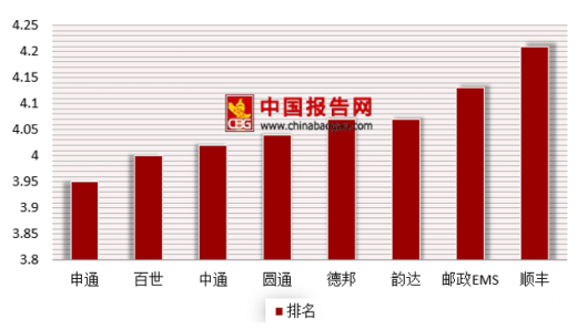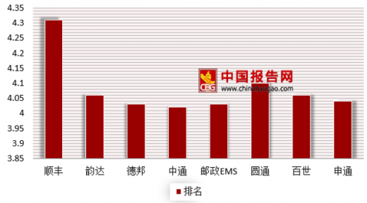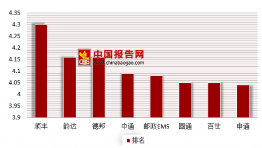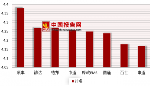 具体到快递公司总体满意度上,顺丰以4.26的得分位居总体满意度榜首,其次为邮政ems和中通,二者以4.12的得分并列第二位。从各项指标上看,顺丰力压其他快递企业稳居首位。