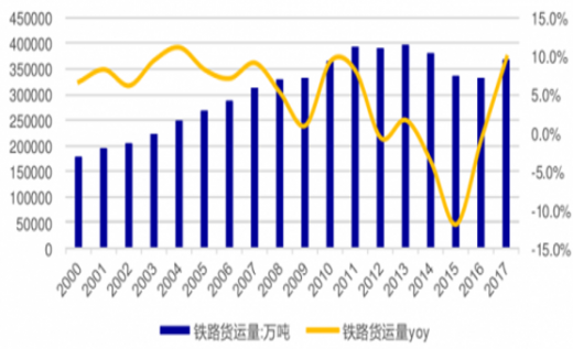 此前2018年10月,国务院办公厅印发了《推进运输结构调整三年行动计划(2018-2020年)》,计划中提出到2020年将实现全国货物运输结构明显优化,铁路、水路承担的大宗货物运输量显著提高,其中与2017年相比,全国铁路货运量增加11亿吨、增长30%,沿海港口大宗货物公路运输量减少4.4亿吨。