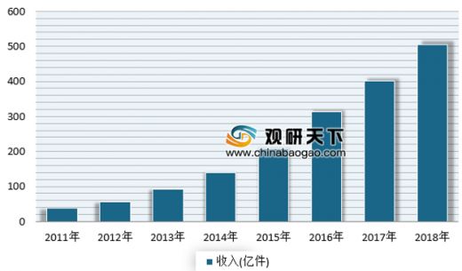 2018年中国快递市场保持增长,快递量、快递业务收入双双上升。根据数据显示,2018年我国快递业务量505亿件,增长25.8%;业务收入完成6010亿元,增长21.2%。